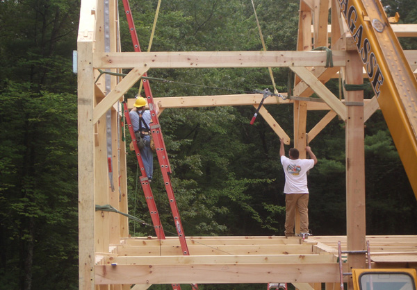 The final bent, number 6, is constructed on the ground next to the barn.